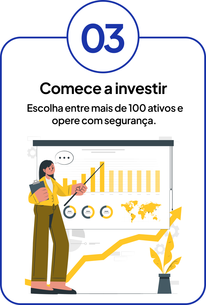 Mais de 100 ativos disponíveis entre Forex, Ações e Cripto